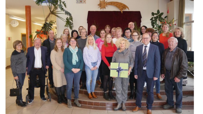 Seit 42 Jahren war Irene Kolbeck als Verwaltungsangestellte an der Grundschule Mitterskirchen tätig. Im Rahmen der Schulweihnachtsfeier wurde sie nun feierlich verabschiedet. Nach den Klassenbeiträgen zu Weihnachten holte Rektor Manuel Hackner die Schulsekretärin auf die Bühne und stimmte mit Unterstützung von Lehrerin Hanna Bachmeier am Piano mit der Schülerschar das Lied „Das wünsch ich dir“ an. Neben vielen Wünschen bekam Irene noch ein Abschiedsalbum geschenkt, welches die Schulfamilie gestaltet hatte mit Fotos aus ihrer Dienstzeit und Postkarten mit möglichen Reisezielen und Glückwünschen zum Ruhestand.